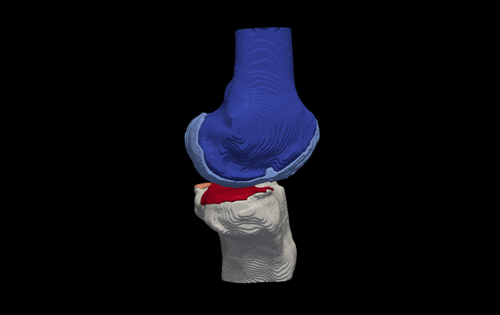 This is a 3D model of knee (femur, tibia, femoral cart, tibial cartilage).